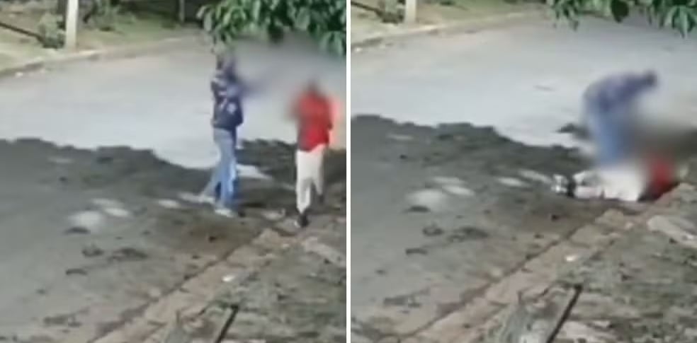 As imagens mostram o momento em que o rapaz é abordado por uma outra pessoa e, em sequência, alvos de disparos de arma de fogo. A vítima foi atingida nessa ação e morreu no local antes da chegada de equipes de socorro.
